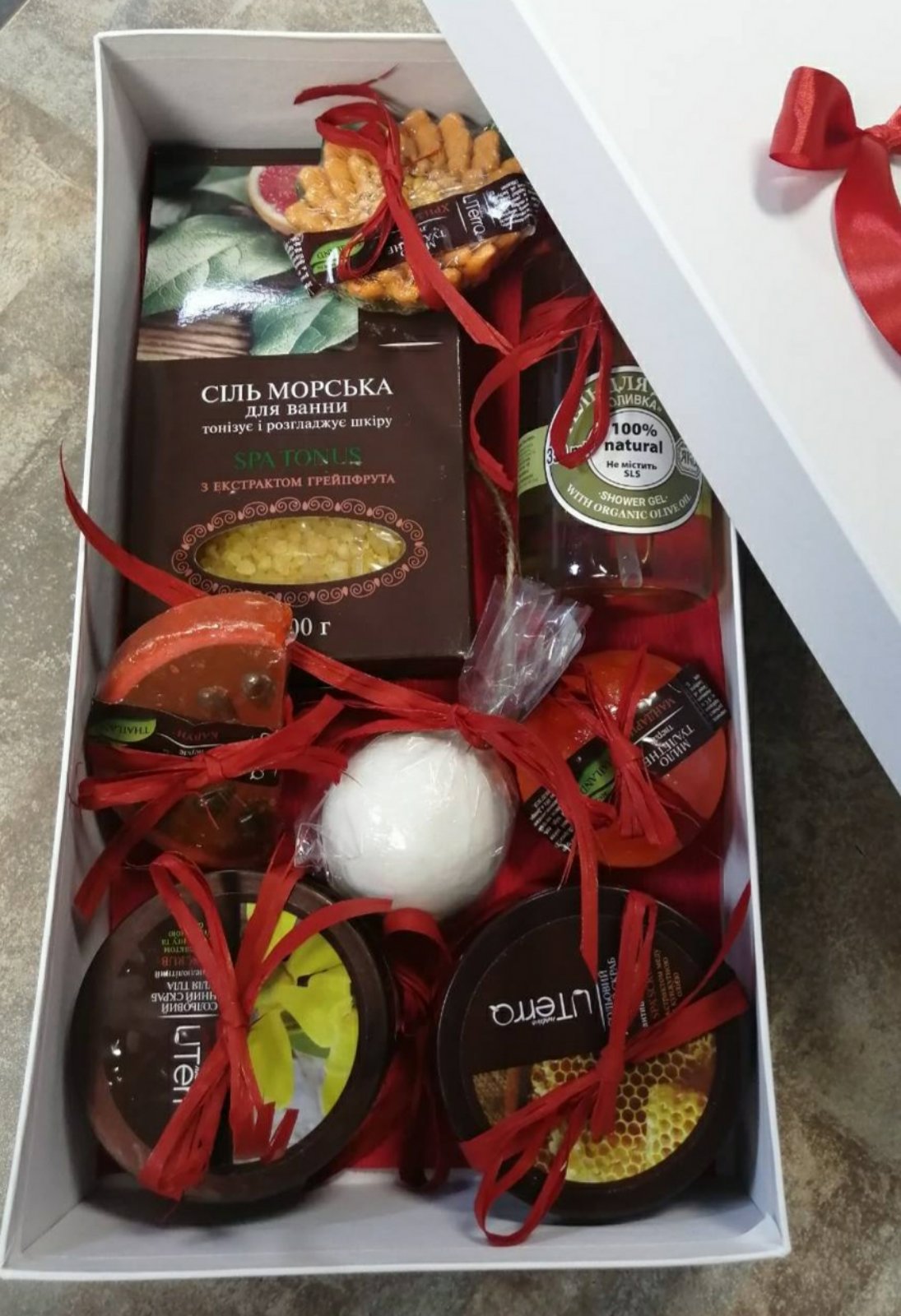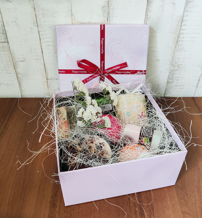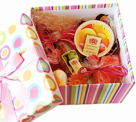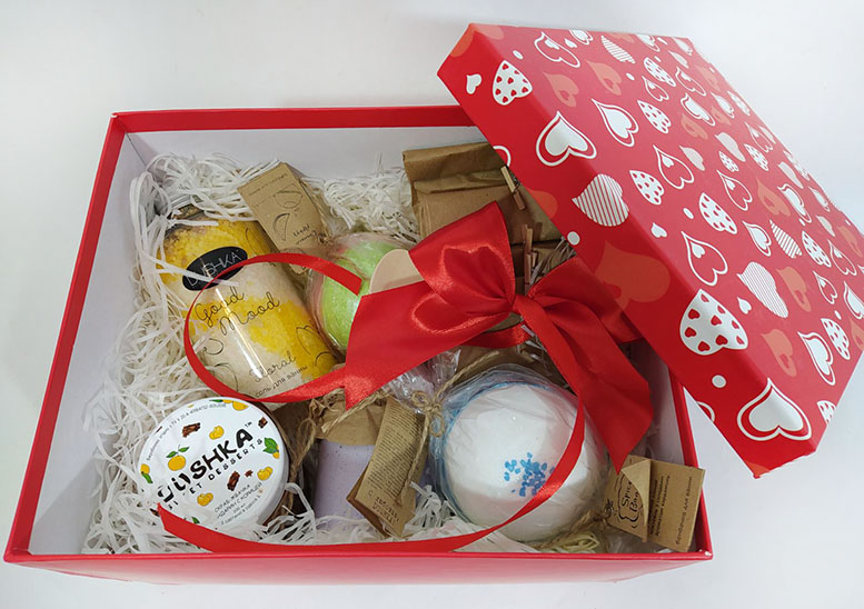 Подарунковий набір буде красиво та зі смаком упакований та прикрашений стрічками та бантом.