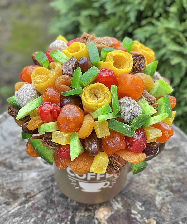 Керамічна чашка з букетом з 500 - 550 г сухофруктів-цукатів.