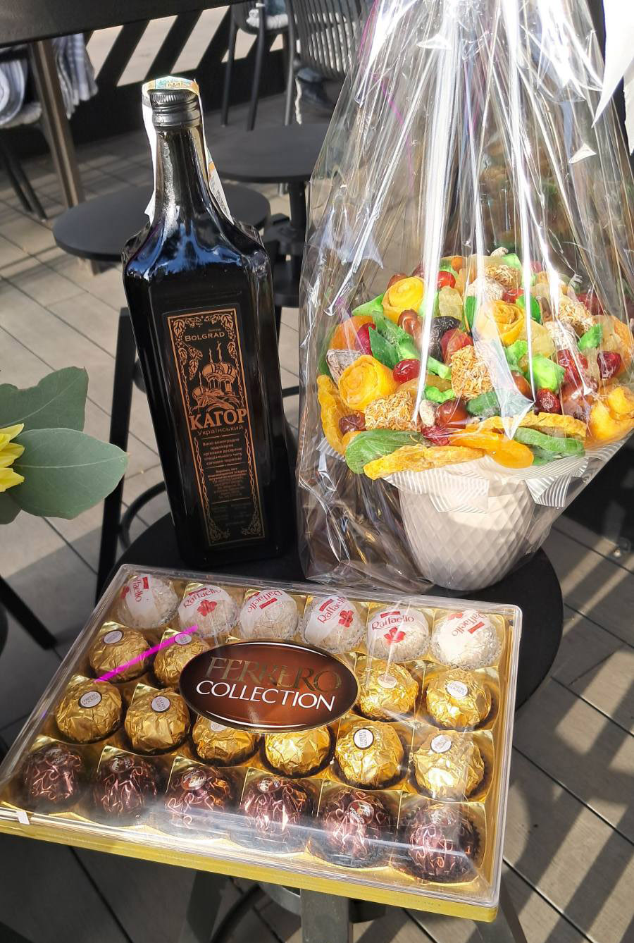 Ми квітковий магазин і тому всі НЕ флористичні подарунки вимагають більше часу на підготовку. Цей складний і надзвичайно гарний букет робитиме його автор - професійний дизайнер, який живе в іншому місті. Інакше не зможемо гарантувати його якість! Потім - відправка поштою до нашого місцевого квіткового магазину для доставки одержувачу... Тому, будь ласка, замовляйте цей подарунок щонайменше за 3-4 дні до доставки.