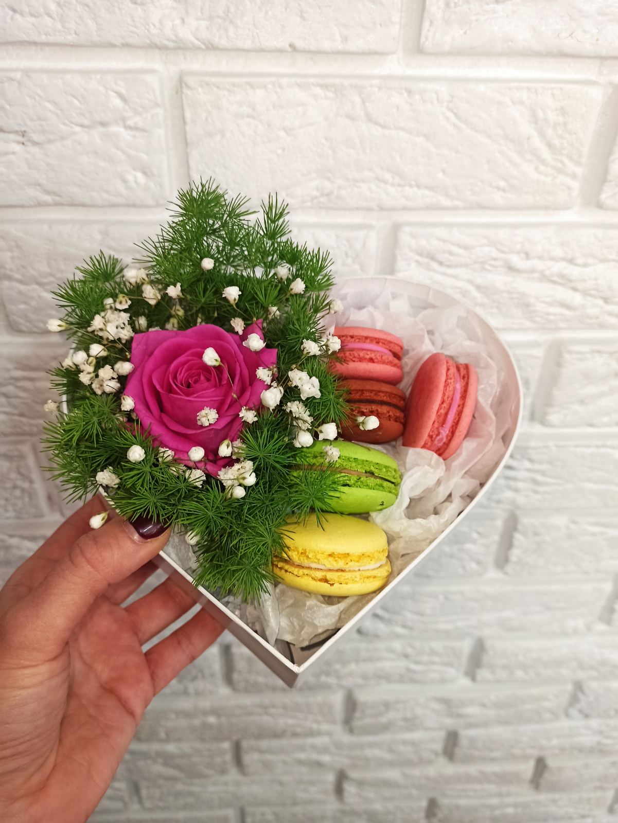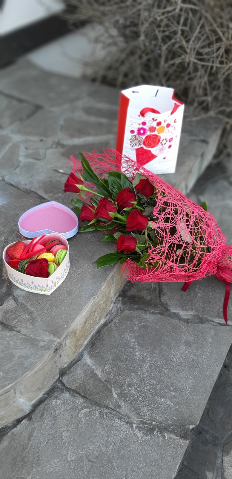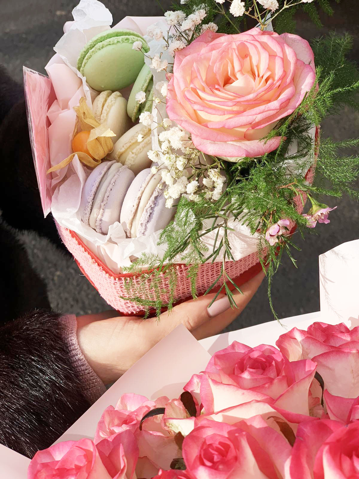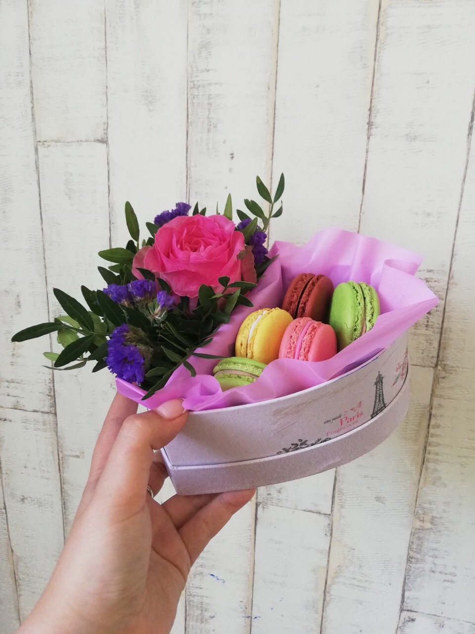 Hey good morning! Bianca was so happy! Thank you so much for allowing us to keep in touch with our child even if in Berdichev, Ukraine! The arrangement was exactly as described on the website and she confirmed that the macarons were as good as those I make!! Thank you.