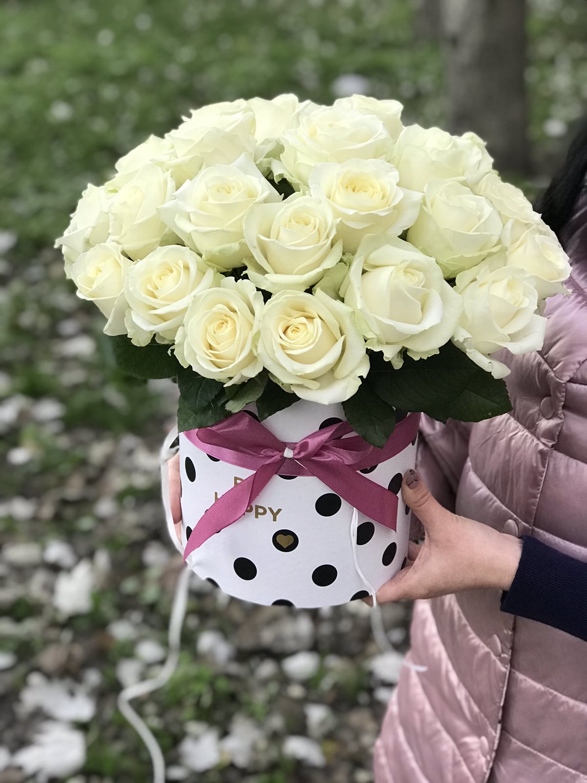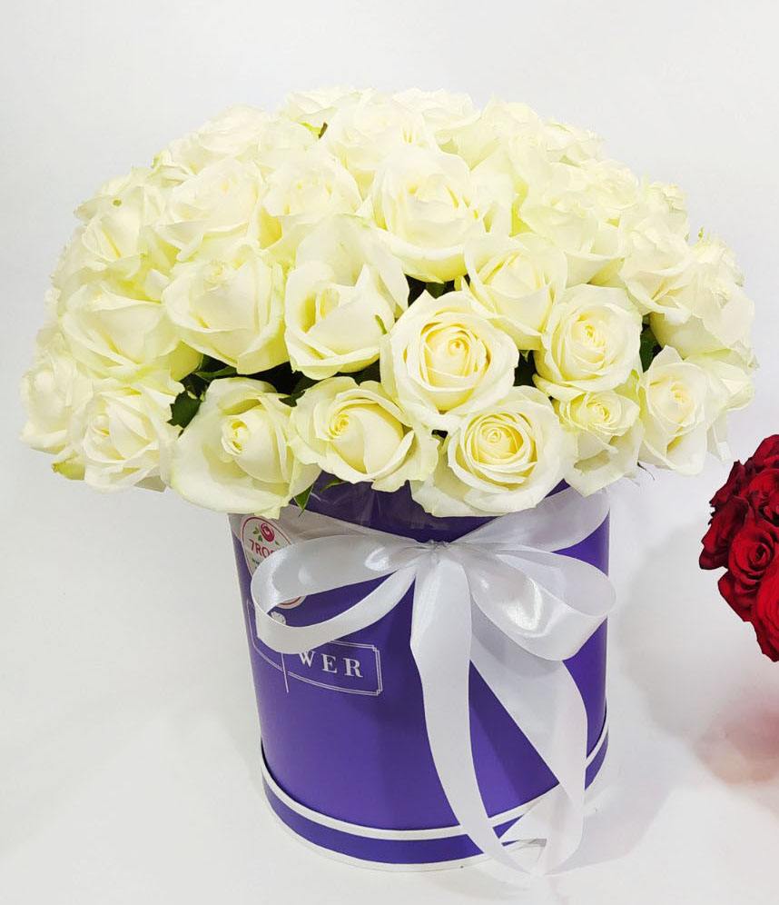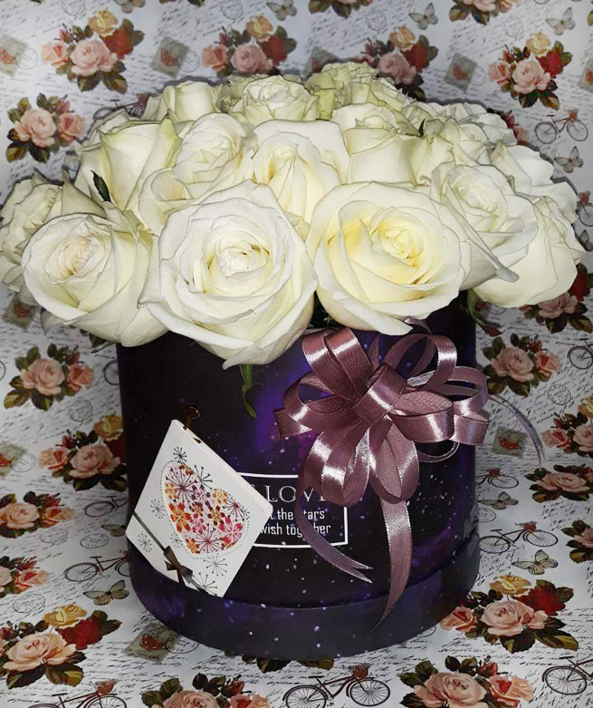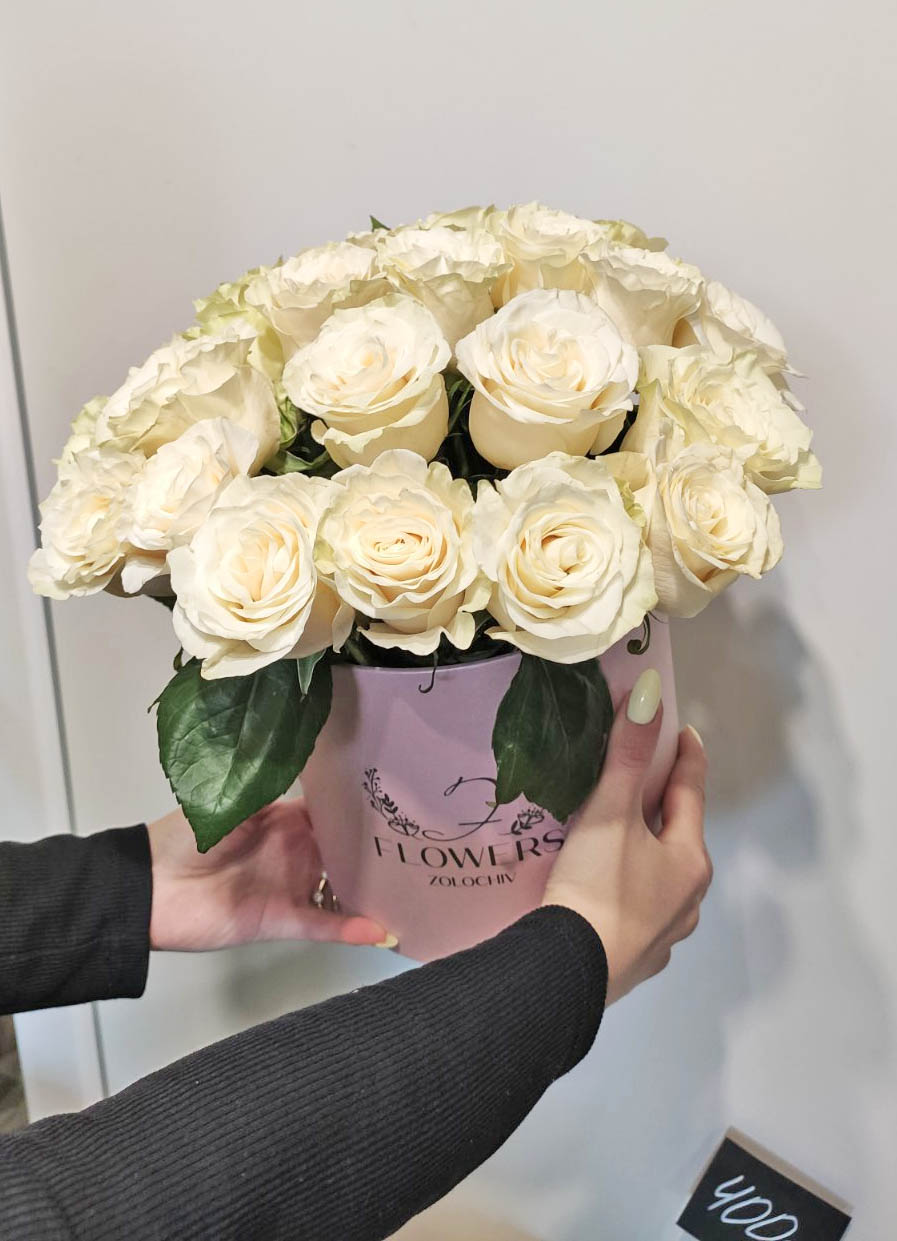 На нашому фото композиція з 25 троянд, але ви можете вибрати більшу чи меншу, на свій смак.