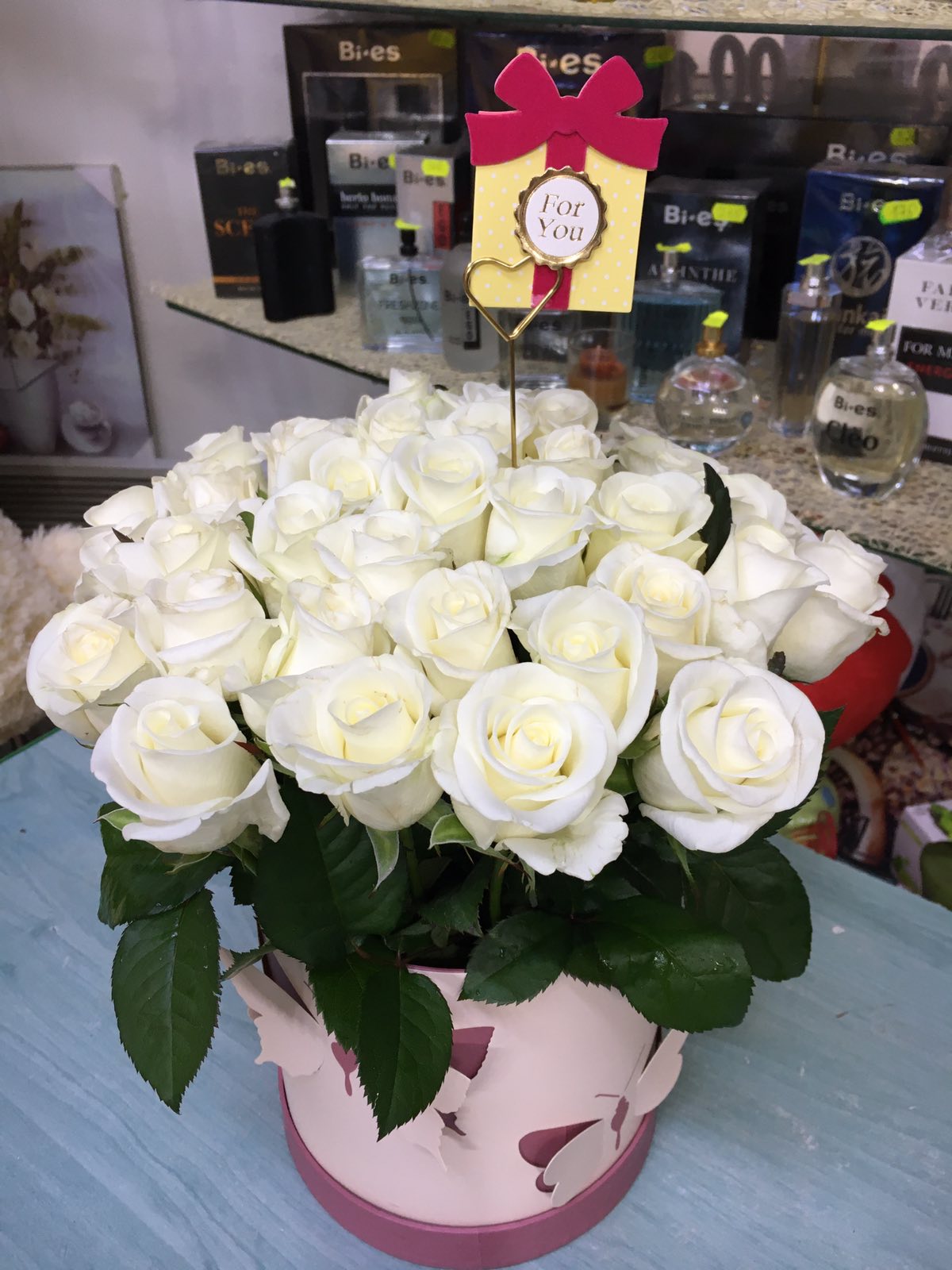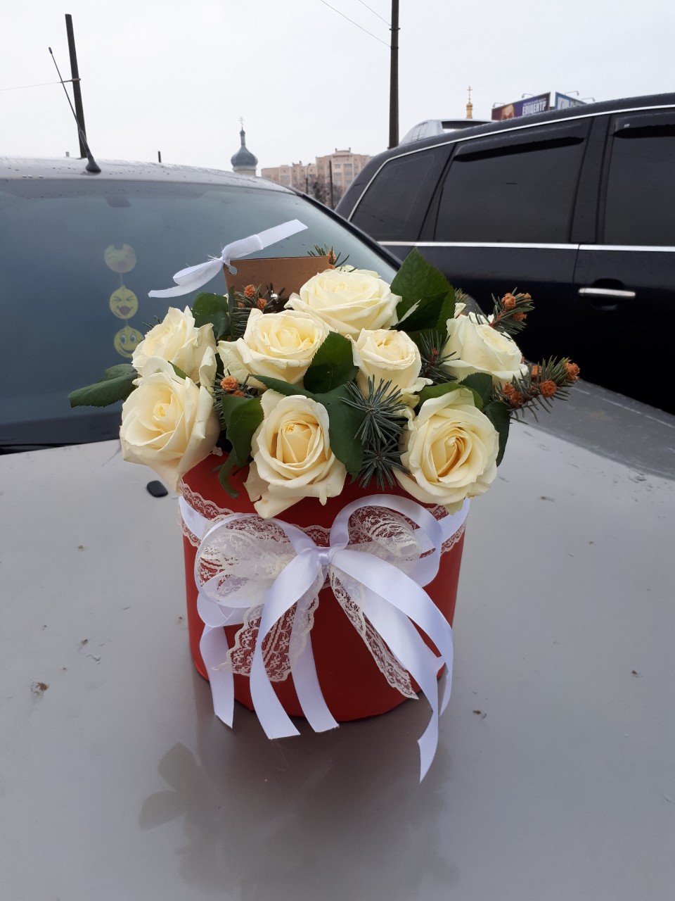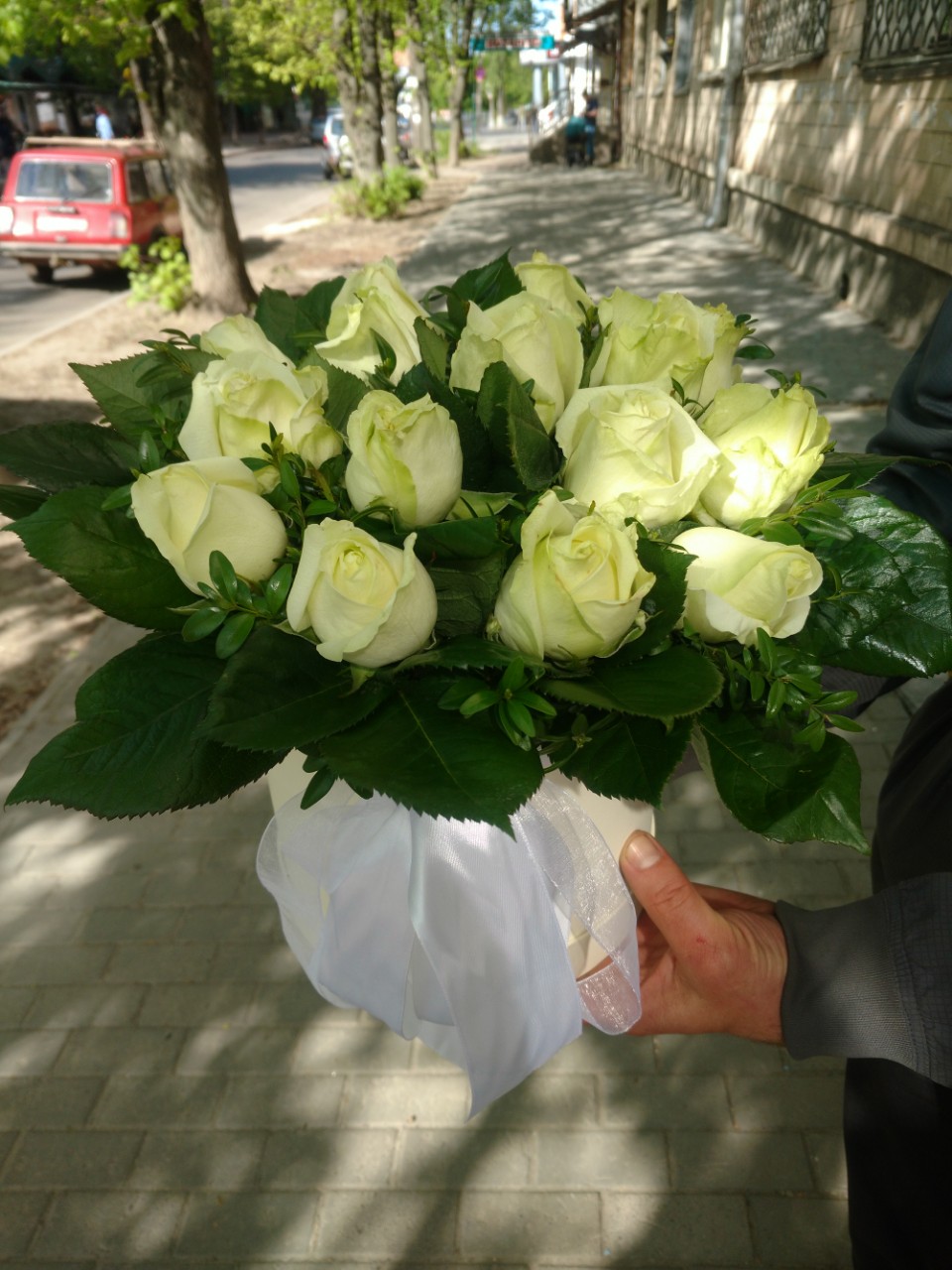 На нашому фото композиція з 25 троянд, але ви можете вибрати більшу чи меншу, на свій смак.