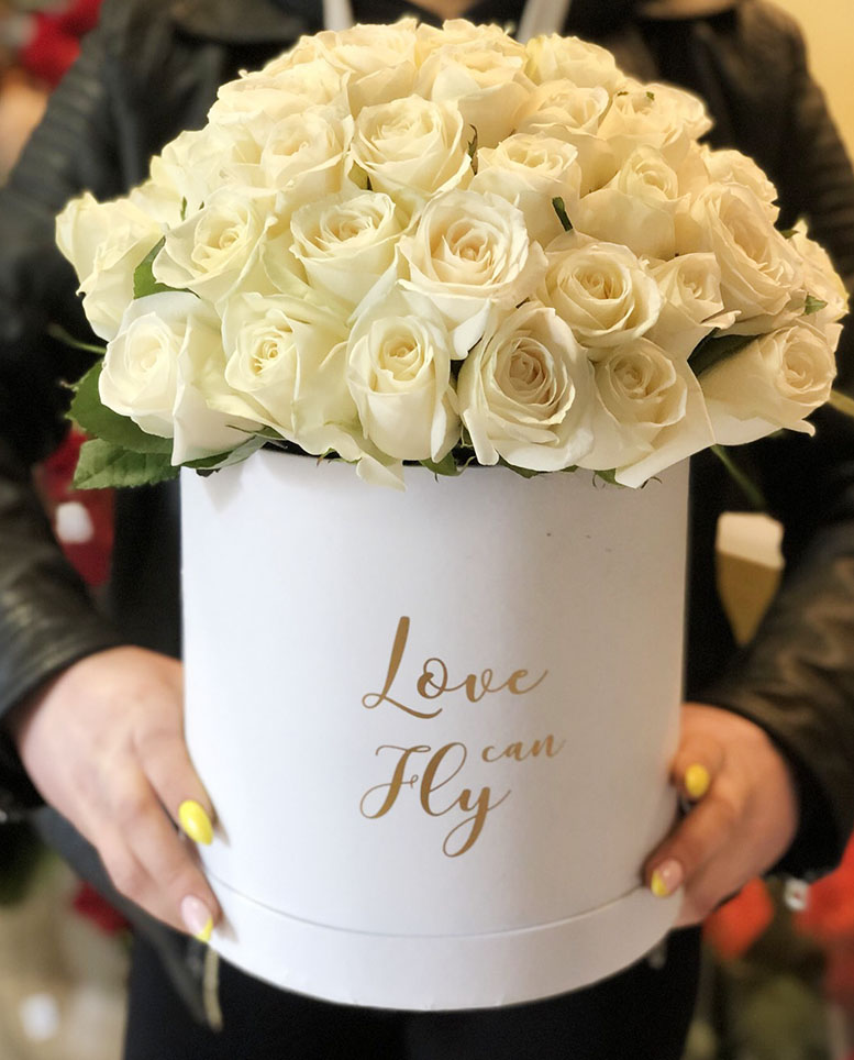 Коробка картонна. На її дно кладеться флористичний оазис, щедро насичений водою, що дозволяє квітам довго залишатися свіжими.