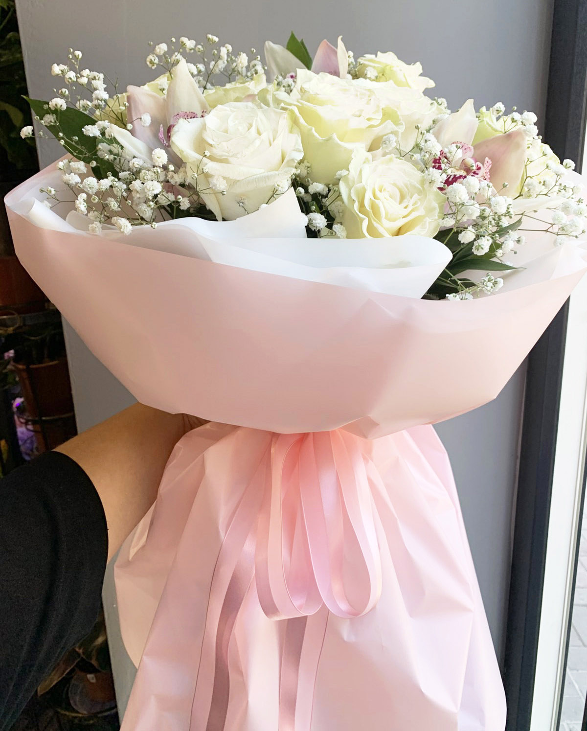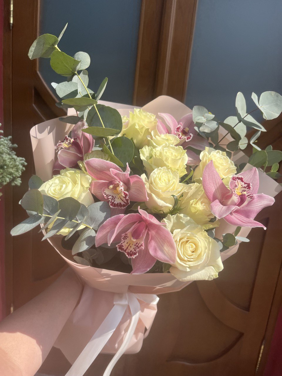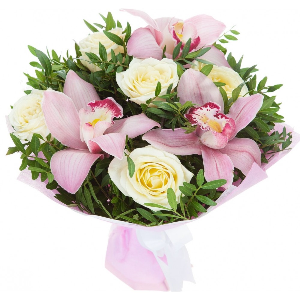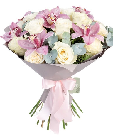 Білі троянди, Рожевi орхідеї. 7 розмірів букета