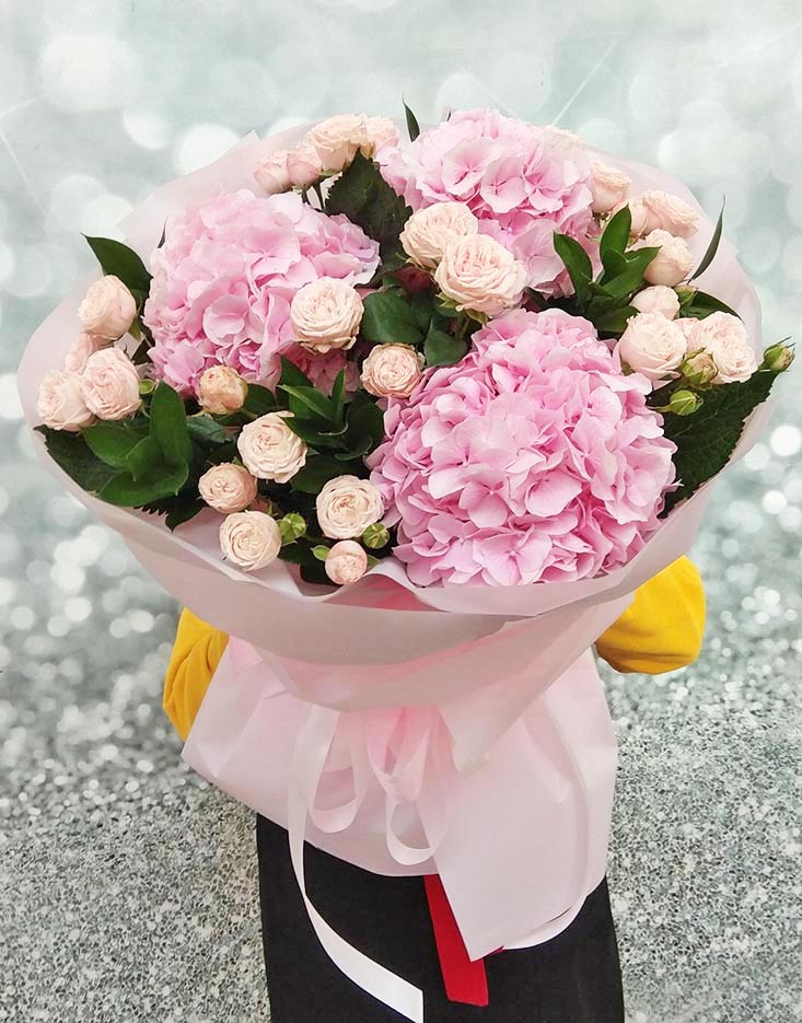 У В А Г А : Період цвітіння гортензії – приблизно з липня до кінця жовтня – середину листопада. Тому цей букет доступний лише у вказаний період року.