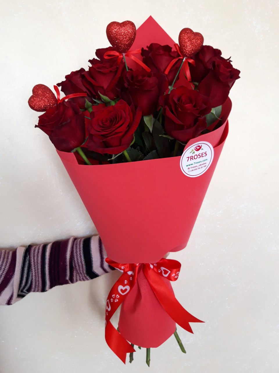 ATTENTION, pls! Special hearts for bouquets might be unavailable at some periods at our flowers shop. At such case we'll add any other heart as substitution, for example: heart shaped balloon, or chocolate heart, etc.